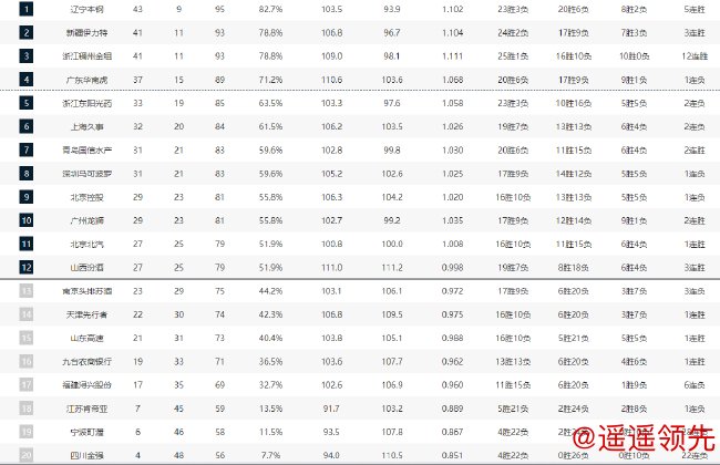 北京时间4月6日消息,CBA常规赛今天迎来第52轮收官战,十场比赛结束争夺后本赛季常规赛尘埃落定。辽宁队获得常规赛冠军,前四名辽宁、新疆、浙江和广东直接进入季后赛1/4决赛,常规赛5-12名的球队将进行12进8淘汰赛。
